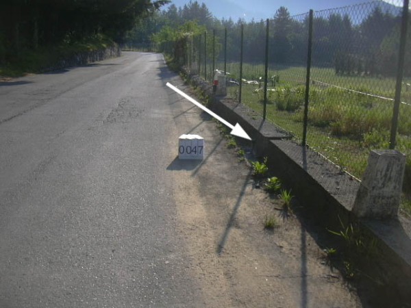 | Contrassegni | [{"simbolo_contrassegno":"B1","materializzazione":"(CSO) – Bullone infisso sul muro di contenimento della strada presso il cippo del Km 35,500"}] |