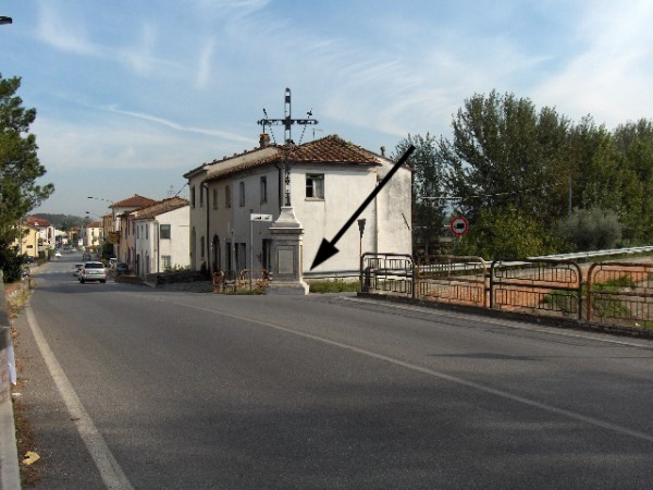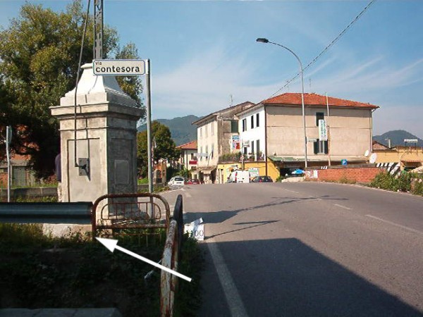| Contrassegni | [{"simbolo_contrassegno":"B1","materializzazione":"(CSO) – Bullone murato sul retro del basamento della croce in ferro monumentale posta all'inizio del ponte (lato sinistro a valle)) e al bivio di via Contesora"}] |
