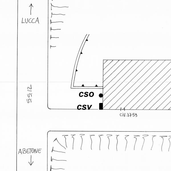 | Contrassegni | [{"simbolo_contrassegno":"B1","materializzazione":"(CSO) – Bullone murato sul fianco sinistro della casa con n\u00b0 civ. 3759, a circa 1,5 m. dallo spigolo"},{"simbolo_contrassegno":"V5","materializzazione":"(CSV) – Targa con linea incisa, indicante livello sul mare m 33, presso lo spigolo suddetto."}] |