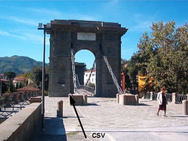 | Contrassegni | [{"simbolo_contrassegno":"B1","materializzazione":"(CSO) – Bullone infisso presso lo spigolo destro del fabbricato difronte al n\u00b0 civ. 9"},{"simbolo_contrassegno":"V5","materializzazione":"(CSV) – Targa con linea incisa, indicante livello sul mare m 115,30, sulla colonna sinistra del ponte delle \"Catene\""}] |