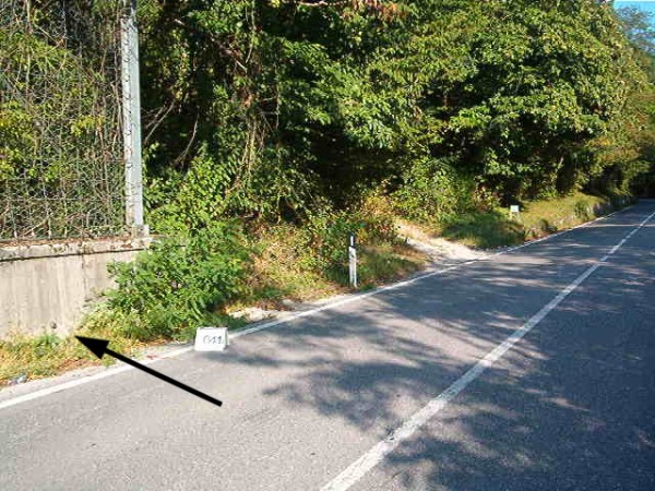 [{"simbolo_contrassegno":"B1","materializzazione":"(CSO) – Bullone murato nel muro di sostegno a monte della strada statale"}]