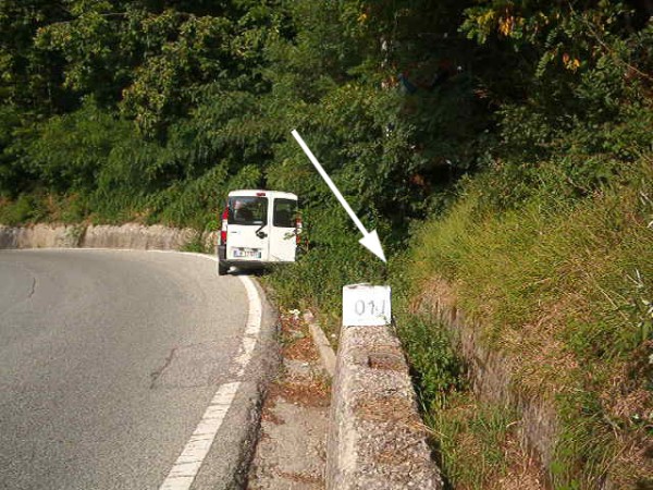| Contrassegni | [{"simbolo_contrassegno":"B1","materializzazione":"(CSO) – Bullone murato sul muro di sostegno protetto da un muretto di una canaletta."}] |