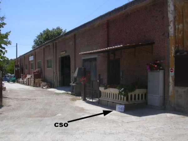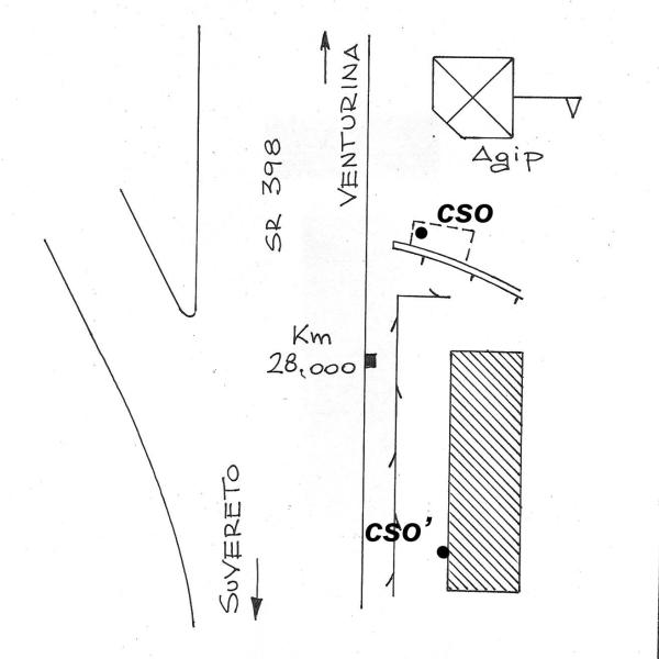 [{"simbolo_contrassegno":"B7","materializzazione":"(CSO) – Centrino inox (Vertice Tecnico Regionale) cementato sul basamento di cemento degli armadi tecnici all'interno del distributore Agip coincidente con il VTR 119606."},{"simbolo_contrassegno":"B1","materializzazione":"(CSO') – Bullone tipo CNR cementato presso lo spigolo dell'edificio della ditta CO.MA.DE.S."}]