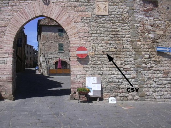 [{"simbolo_contrassegno":"B1","materializzazione":"(CSO) – Bullone tipo IGM infisso a dx della porta della canonica in piazza V. Veneto n\u00b0 1A."},{"simbolo_contrassegno":"V2","materializzazione":"(CSV) – Piastrina a barilotto cementata a dx dell'ingresso al vecchio paese in piazza V. Veneto"}]