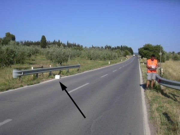 [{"simbolo_contrassegno":"B1","materializzazione":"(CSO) – Bullone tipo CNR cementato sul tombino stradale posto al km 25,550 della SR 398."}]