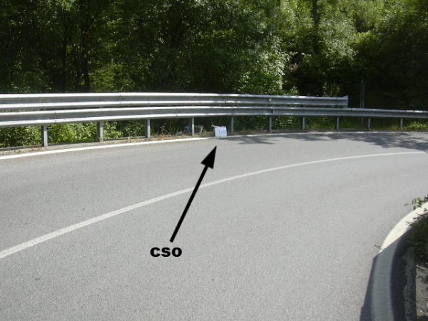 [{"simbolo_contrassegno":"B1","materializzazione":"(CSO) – Bullone tipo IGM cementato sulla fiancata del ponte."},{"simbolo_contrassegno":"B2","materializzazione":"(CSO') – Chiodo anonimo tipo CNR cementato sul ponte a NO."}]