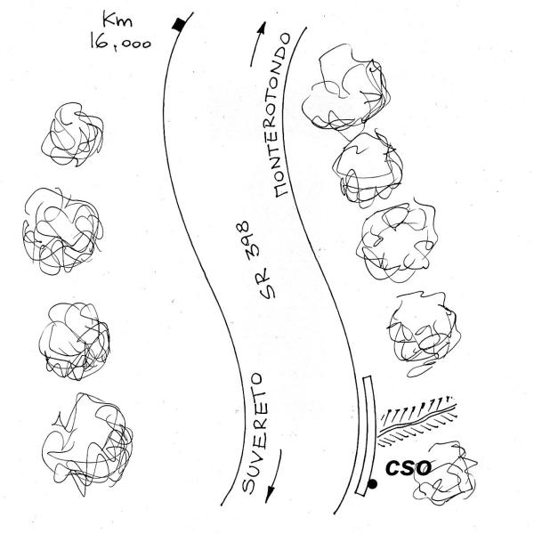 [{"simbolo_contrassegno":"B1","materializzazione":"(CSO) – Bullone tipo CNR infisso sul muro del ponticello al km 16,150 della SR 398."}]