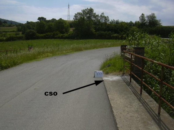 | Contrassegni | [{"simbolo_contrassegno":"B4","materializzazione":"(CSO) – Centrino universale cementato sulla platea del ponte sponda sx a valle."},{"simbolo_contrassegno":"B2","materializzazione":"(CSO') – Chiodo anonimo tipo CNR cementato sulla platea del ponte sponda sx a monte."}] |