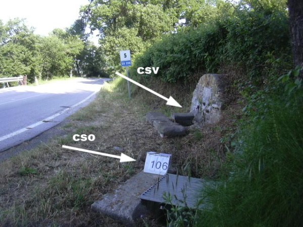 | Contrassegni | [{"simbolo_contrassegno":"B1","materializzazione":"(CSO) – Bullone tipo IGM cementato a lato di tombino scorriacque."},{"simbolo_contrassegno":"V4","materializzazione":"(CSV) – Piastrina altro ente (Caposaldo Controllo Zona Boracifera) cementata su parete di ex fonte nei pressi del CSO."}] |
