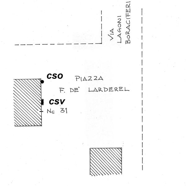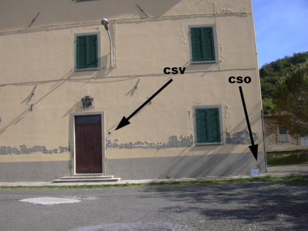 | Contrassegni | [{"simbolo_contrassegno":"B1","materializzazione":"(CSO) – Bullone tipo IGM cementato presso lo spigolo dx del fabbricato con il n\u00b0 civico 31"},{"simbolo_contrassegno":"V2","materializzazione":"(CSV) – Piastrina a barilotto cementata a dx della porta con il n\u00b0 civico 31."}] |