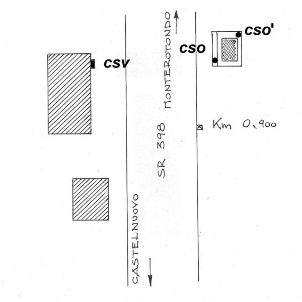[{"simbolo_contrassegno":"B2","materializzazione":"(CSO) – Chiodo anonimo tipo CNR cementato sul cordolo del tombino scorriacque."},{"simbolo_contrassegno":"V4","materializzazione":"(CSV) – Piastrina altro Ente (caposaldo Controllo Zona Boracifera) cementata presso lo spigolo dx del fabbricato."},{"simbolo_contrassegno":"B5","materializzazione":"(CSO') – Centrino anonomo CNR sul col cordolo del tombino lato monte, operto da grata. Non misurabile"}]