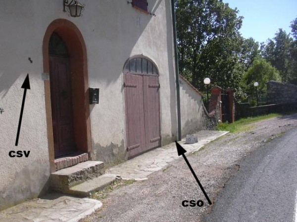 | Contrassegni | [{"simbolo_contrassegno":"B1","materializzazione":"(CSO) – Bullone tipo IGM infisso presso lo spigolo dx del fabbricato."},{"simbolo_contrassegno":"V4","materializzazione":"(CSV) – Piatrina di altro Ente (caposaldo Controllo Zona Boracifera) a sx della porta d' entrata."}] |