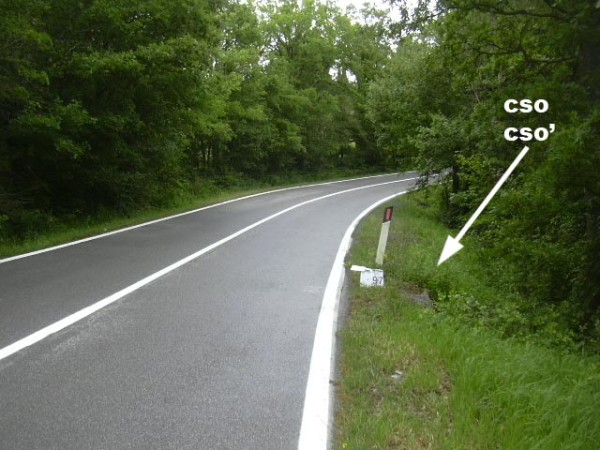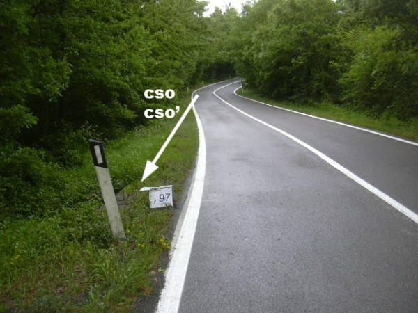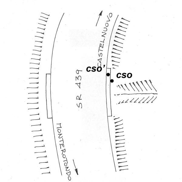 | Contrassegni | [{"simbolo_contrassegno":"B1","materializzazione":"(CSO) – Bullone tipo IGM cementato sul tombino di attraversamneto stradale acque."},{"simbolo_contrassegno":"B2","materializzazione":"(CSO') – Chiodo anonimo tipo CNR posto sulla sommit\u00e0 del cordolo."}] |