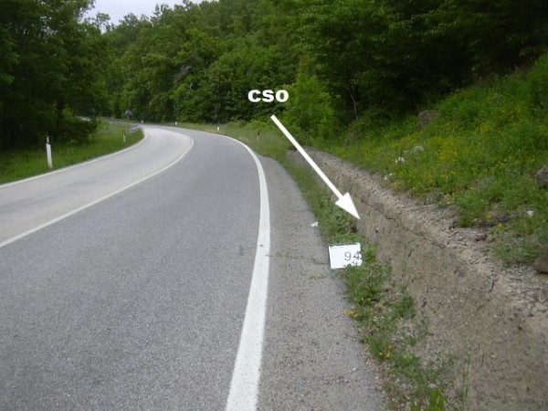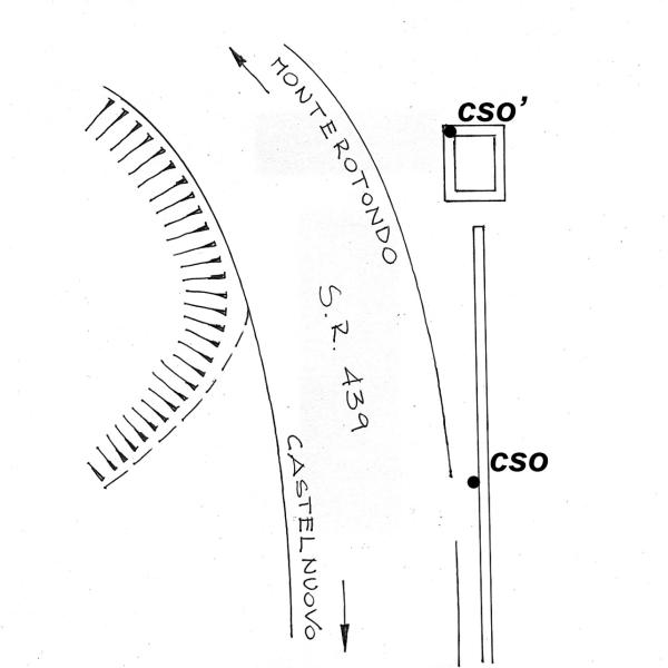 | Contrassegni | [{"simbolo_contrassegno":"B1","materializzazione":"(CSO) – Bullone tipo IGM cementato sul muro di sostegno a lato strada."},{"simbolo_contrassegno":"B2","materializzazione":"(CSO') – Chiodo anonimo tipo CNR cementato sul cordolo del tombino a fine muro di sostegno."}] |
