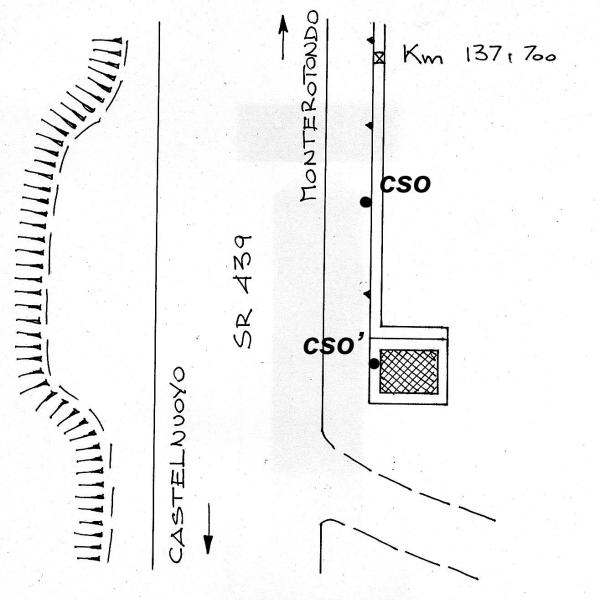 | Contrassegni | [{"simbolo_contrassegno":"B1","materializzazione":"(CSO) – Bullone tipo IGM cementato sul muro di sostegno a fianco della strada."},{"simbolo_contrassegno":"B2","materializzazione":"(CSO') – Chiodo anonimo tipo CNR cementato sul cordolo della grata a fine muro di sostegno."}] |