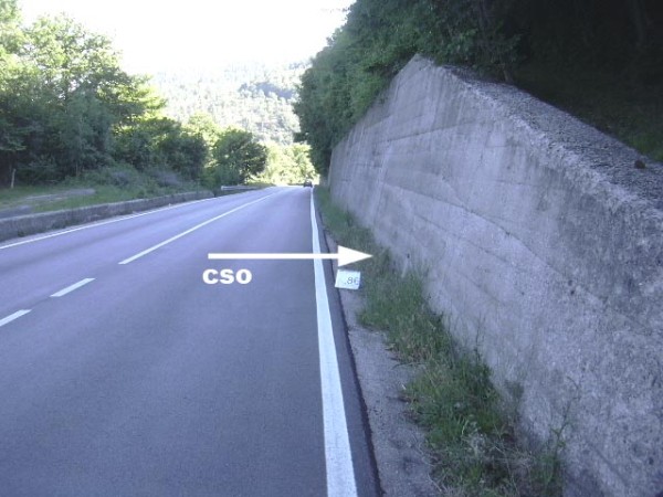 | Contrassegni | [{"simbolo_contrassegno":"B1","materializzazione":"(CSO) – Bullone tipo IGM cementato sul muro di sostegno al km 133,190 circa."},{"simbolo_contrassegno":"B2","materializzazione":"(CSO') – Chiodo anonimo tipo CNR cementato sulla sommit\u00e0 del muro di sostegno 15m. prima del CSO."}] |