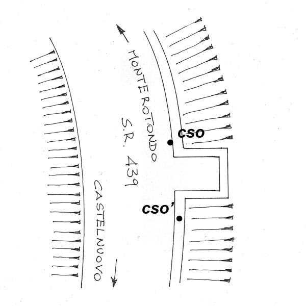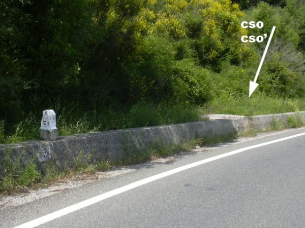 | Contrassegni | [{"simbolo_contrassegno":"B1","materializzazione":"(CSO) – Bullone tipo IGM cementato su muro di sostegno , 5m. prima del cippo km 131,900."},{"simbolo_contrassegno":"B2","materializzazione":"(CSO') – Chiodo anonimo tipo CNR cementato sulla sommit\u00e0 del muro di sostegno nei pressi del CSO."}] |