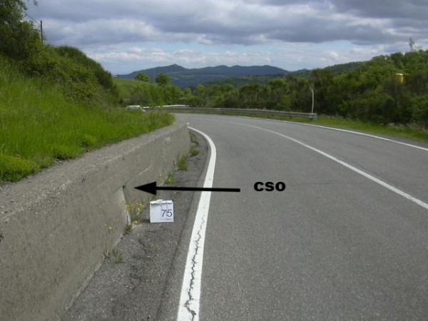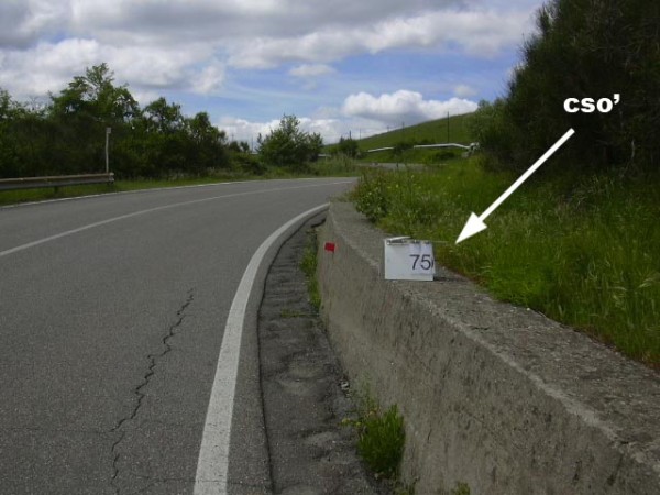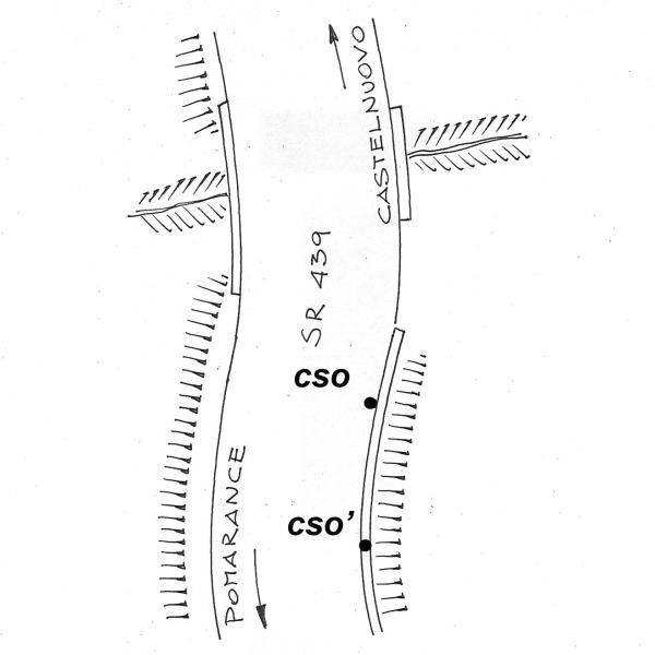 | Contrassegni | [{"simbolo_contrassegno":"B1","materializzazione":"(CSO) – Bullone tipo IGM murato sul muro in c.a. a bordo strada"},{"simbolo_contrassegno":"B2","materializzazione":"(CSO') – Chiodo anonimo tipo CNR murato sulla sommit\u00e0 del medesimo muro del CSO a 30m. circa."}] |