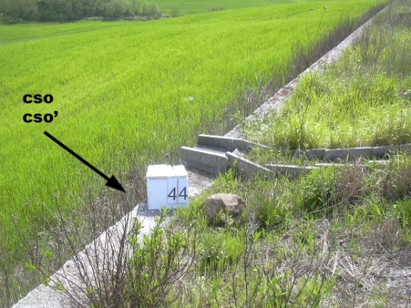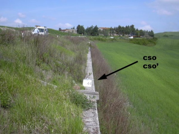 [{"simbolo_contrassegno":"B1","materializzazione":"(CSO) – Bullone tipo IGM cementato sul muro di sostegno (lato valle) della strada."},{"simbolo_contrassegno":"B7","materializzazione":"(CSO') – Centrino inox (Vertice Tecnico Regionale) posto sulla sommit\u00e0 del medesimo muro in corrispondenza del CSO."}]