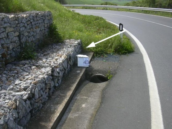 | Contrassegni | [{"simbolo_contrassegno":"B4","materializzazione":"(CSO) – Centrino universale cementato su muretto scolina scorriacque a bordo strada."}] |