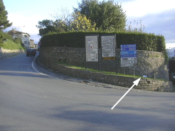 [{"simbolo_contrassegno":"B1","materializzazione":"(CSO) – Bullone infisso sul muro di sostegno in pietra."}]