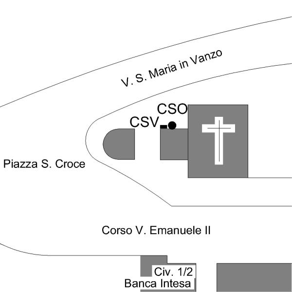 | Contrassegni | [{"simbolo_contrassegno":"B1","materializzazione":"(CSO) – Bullone infisso nella parete, a 1 metro dallo spigolo sinistro del campanile, con affaccio su Via S. Maria in Vanzo."},{"simbolo_contrassegno":"V2","materializzazione":"(CSV) – Piastrina a barilotto sulla stessa parete, in corrispondenza del CSO."}] |