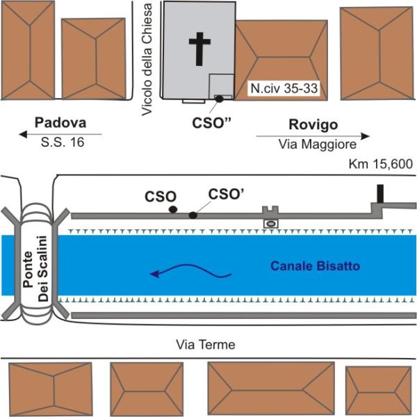 | Contrassegni | [{"simbolo_contrassegno":"B1","materializzazione":"(CSO) – Bullone infisso nel muro alla base dell'argine del canale Bisatto, di fronte alla chiesa parrocchiale del paese."},{"simbolo_contrassegno":"B4","materializzazione":"(CSO') – Centrino universale infisso sul muro dell'argine del canale Bisatto, in corrispondenza del CSO."},{"simbolo_contrassegno":"B5","materializzazione":"(CSO'') – Disco impiombato sulla soglia, a sinistra entrando, della porta del campanile, sul lato destro rispetto alla facciata della Chiesa parrocchiale."}] |