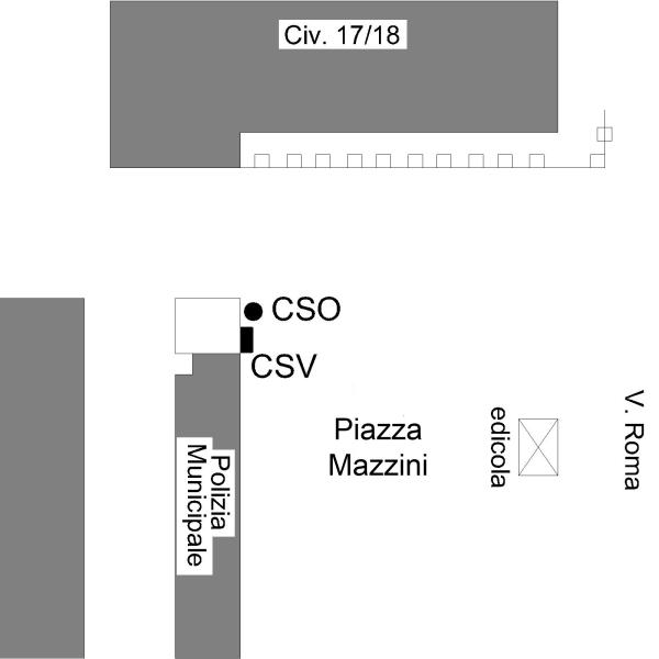 [{"simbolo_contrassegno":"B2","materializzazione":"(CSO) – Chiodo anonimo infisso nella pavimentazione alla base della torre, al centro della facciata verso la piazza."},{"simbolo_contrassegno":"V2","materializzazione":"(CSV) – Piastrina a barilotto in corrispondenza del CSO."}]