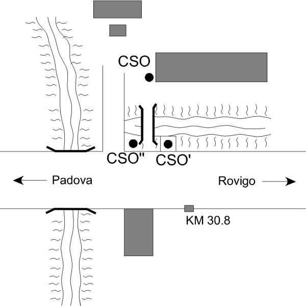 | Contrassegni | [{"simbolo_contrassegno":"B1","materializzazione":"(CSO) – Bullone infisso nella facciata Nord del primo fabbricato, dopo l'ingresso."},{"simbolo_contrassegno":"B4","materializzazione":"(CSO') – Centrino universale infisso sul basamento di cemento sormontato da elemento luminoso a destra dell'entrata alla casa."},{"simbolo_contrassegno":"P4","materializzazione":"(CSO'') -Pozzetto in cemento – non ritrovato – interrato, a m 18,85 dall'estremit\u00e0 del cordolo in cemento del ponticello sul canale, a m 6,60 dall'asse della S.S."}] |