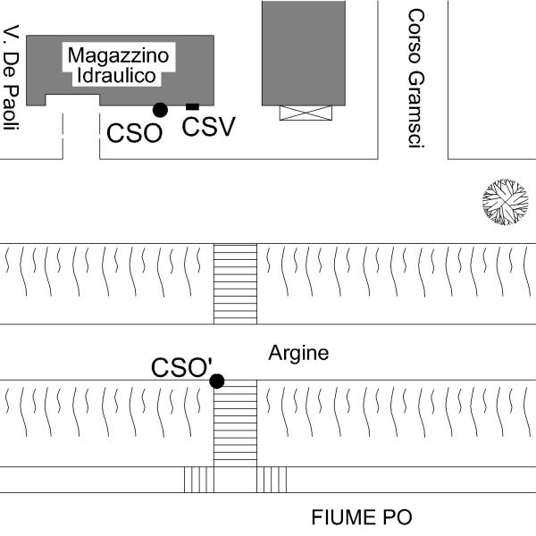 | Contrassegni | [{"simbolo_contrassegno":"B1","materializzazione":"(CSO) – Bullone infisso sulla facciata del magazzino idraulico in prossimita' dello spigolo destro."},{"simbolo_contrassegno":"V2","materializzazione":"(CSV) – Piastrina a barilotto (Magistrato Acqua 1957) infissa sulla facciata del magazzino idraulico (V. Gramsci n\u00b0 1\/A)."},{"simbolo_contrassegno":"B4","materializzazione":"(CSO') – Centrino universale infisso alla sommita' dell'asta idrometrica."}] |
