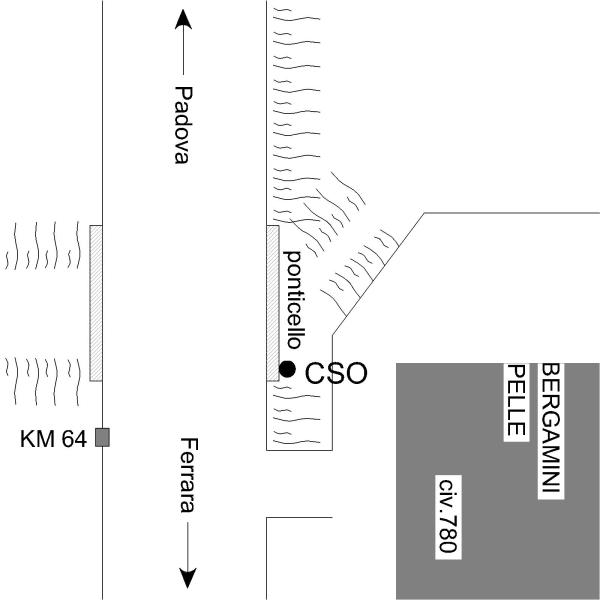 | Contrassegni | [{"simbolo_contrassegno":"B1","materializzazione":"(CSO) – Bullone infsso nella testata verso Ferrara del muretto, lato sud, all'altezza del civico 780 (Bergamini pelle)."}] |