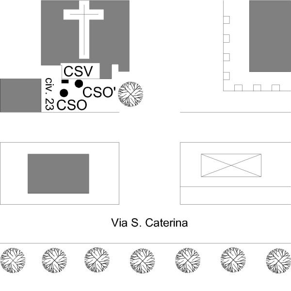 | Contrassegni | [{"simbolo_contrassegno":"P4","materializzazione":"(CSO) – IV Categoria – Pozzetto in cemento alla base del muro di facciata nella risega che forma il pilastro di sinistra."},{"simbolo_contrassegno":"V3","materializzazione":"(CSV) – Piastrina antica sulla facciata, a sinistra della porta suddetta."},{"simbolo_contrassegno":"B5","materializzazione":"(CSO') – Disco metallico impiombato sulla soglia della porta."}] |