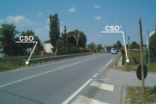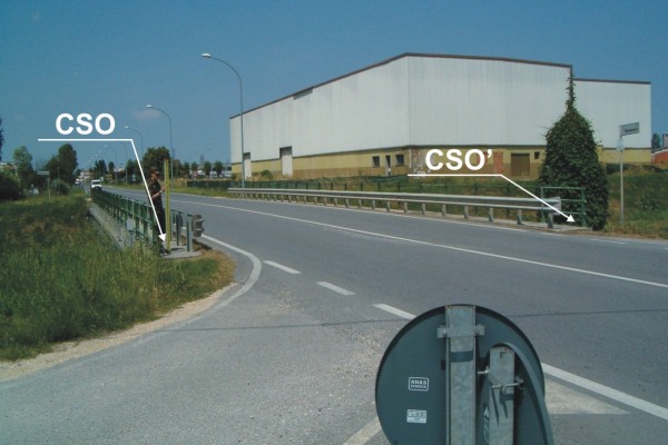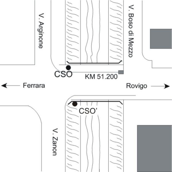 [{"simbolo_contrassegno":"B2","materializzazione":"(CSO) – Chiodo anonimo infisso all'inizio del marciapiede del ponte sul collettore padano."},{"simbolo_contrassegno":"B1","materializzazione":"(CSO') – Bullone infisso sulla spalla del ponte a sinistra in direzione Ferrara."}]