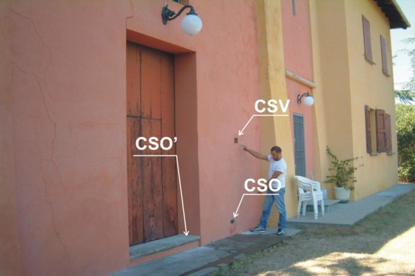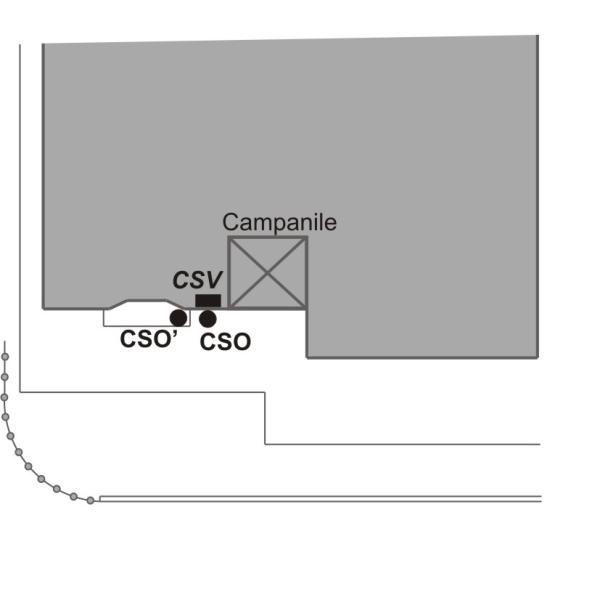 | Contrassegni | [{"simbolo_contrassegno":"B1","materializzazione":"(CSO) Bullone infisso a destra della porta di ingresso della chiesa, in corrispondenza del CSV."},{"simbolo_contrassegno":"B3","materializzazione":"(CSO') Cerchio inciso all'estremit\u00e0 destra del primo gradino della porta (Non misurato)."},{"simbolo_contrassegno":"V2","materializzazione":"(CSV) Piastrina a barilotto infissa sulla facciata a destra della porta."}] |