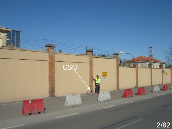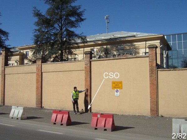 [{"simbolo_contrassegno":"B1","materializzazione":"(CSO) – Bullone infisso nella sesta colonna in mattoni del muro di recinzione a destra dell'ingresso della caserma."}]