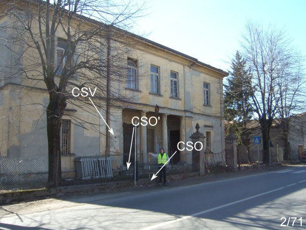 | Contrassegni | [{"simbolo_contrassegno":"B1","materializzazione":"(CSO) – Bullone infisso nel muro in cemento alla base della recinzione delle ex Scuole Elementari, a sinistra del cancello d'ingresso."},{"simbolo_contrassegno":"B5","materializzazione":"(CSO') – Disco impiombato sul secondo gradino della scalinata d'ingresso, presso l'estremit\u00e0 sinistra, addossato alla colonna del CSV."},{"simbolo_contrassegno":"V3","materializzazione":"(CSV) – Piastrina antica in ghisa infissa nella colonna quadrata a sinistra dell'ingresso, faccia volta alla strada."}] |