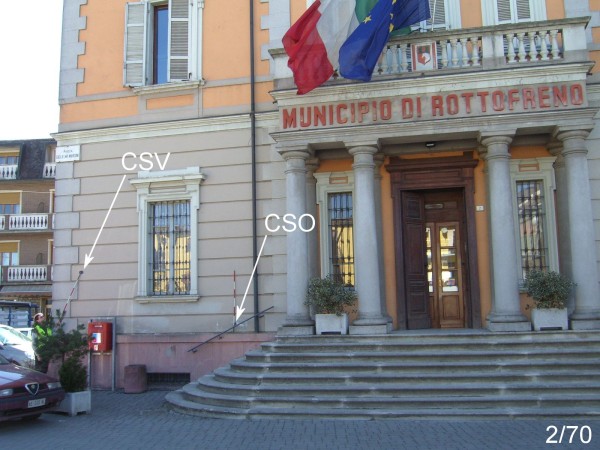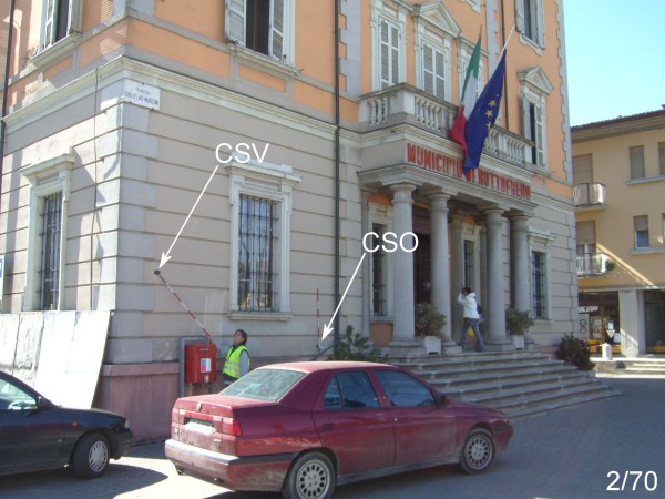 | Contrassegni | [{"simbolo_contrassegno":"B1","materializzazione":"(CSO) – Bullone infisso sulla facciata del Municipio, a sinistra dell'ingresso, sopra lo zoccolo di granito ed in corrispondenza dello scalone."},{"simbolo_contrassegno":"V2","materializzazione":"(CSV) – Piastrina in ghisa infissa sulla stessa facciata, in prossimit\u00e0 dello spigolo sinistro."}] |