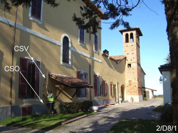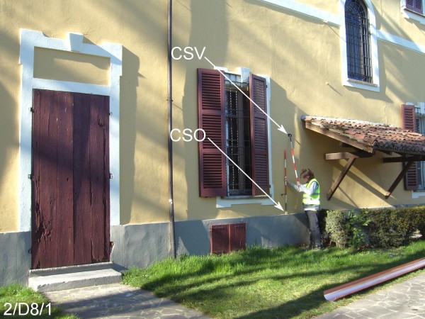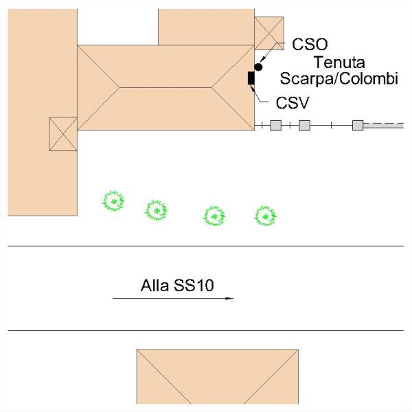 | Contrassegni | [{"simbolo_contrassegno":"B1","materializzazione":"(CSO) – Bullone infisso nella facciata laterale destra, a destra della prima finestra dopo la porta d'accesso alla Tenuta Scarpa."},{"simbolo_contrassegno":"V2","materializzazione":"(CSV) – Piastrina in ghisa IGM infissa sulla stessa facciata in corrispondenza del CSO."}] |