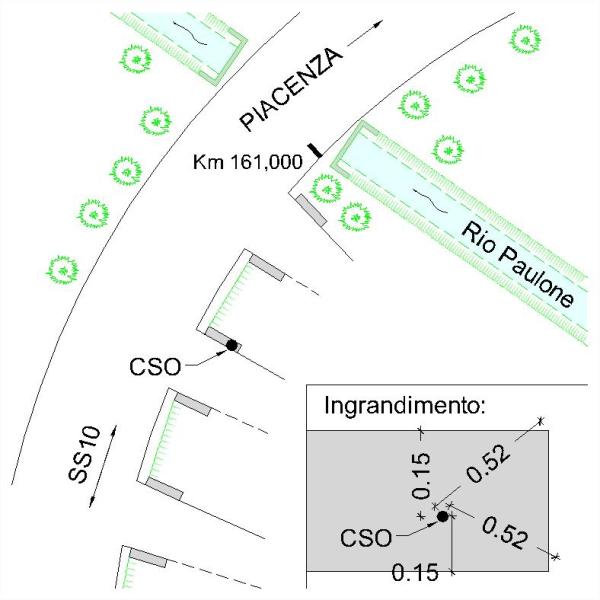 | Contrassegni | [{"simbolo_contrassegno":"B4","materializzazione":"(CSO) – Centrino universale infisso sulla sommit\u00e0 del muro di contenimento della seconda stradina che esce dalla Statale, sulla destra andando verso Piacenza, poco prima della chilometrica 161,000."}] |