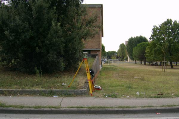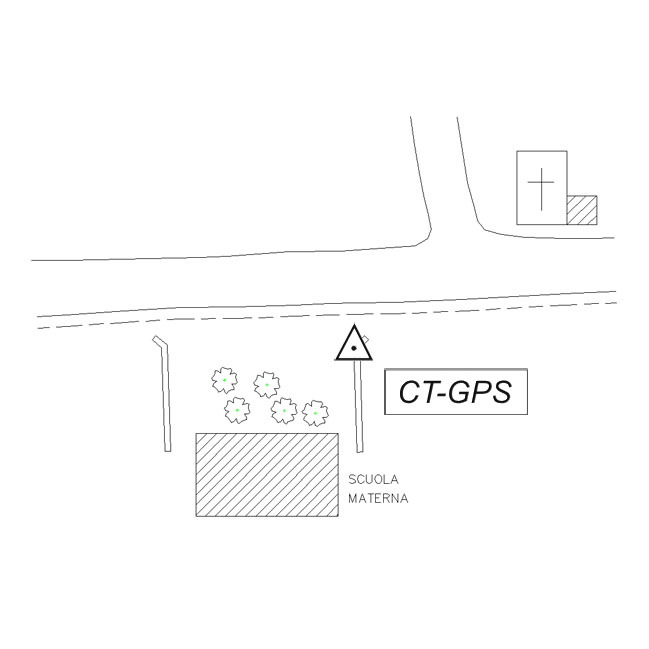 | Materializzazione | Centrino metallico, con semisfera anonimo, infisso sulla testa del muretto in cemento armato di contenimento del terrapieno della scuola materna. |