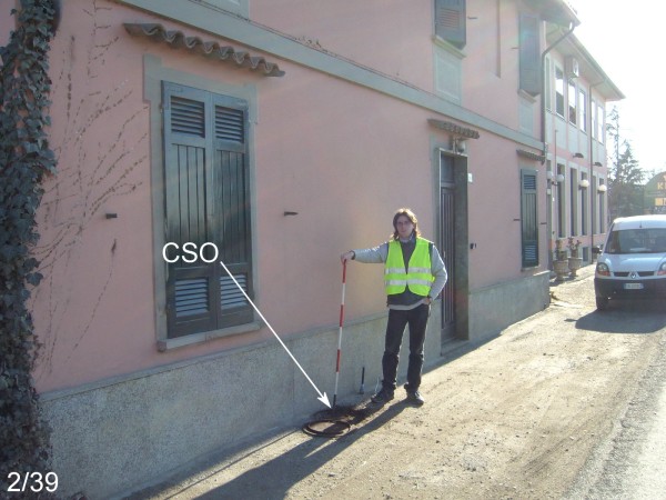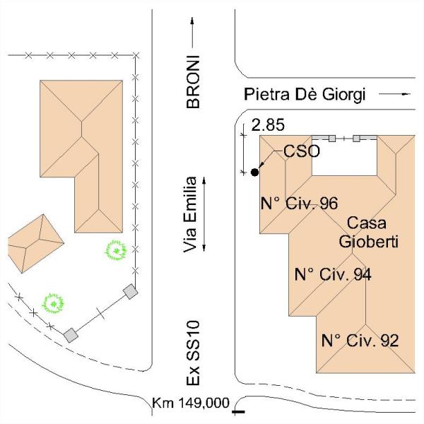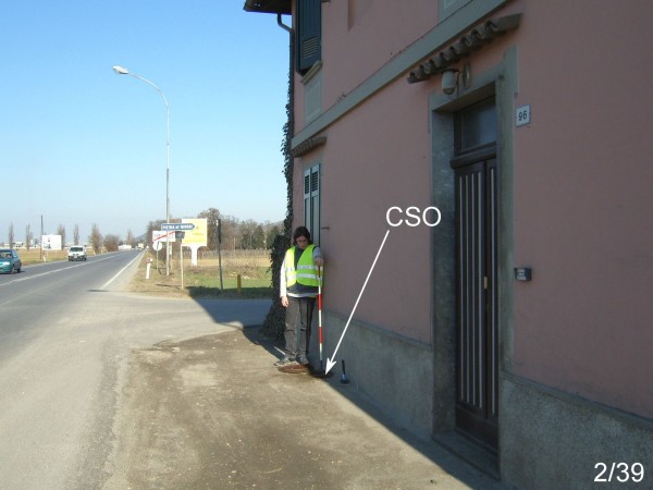 | Contrassegni | [{"simbolo_contrassegno":"P5","materializzazione":"(CSO) – Pozzetto rialzato con tubo in PVC e coperchio in ghisa protetto da un chiusino metallico anonimo, posto alla base della facciata della casa con il numero civico 96, tra la porta e l'ultima finestra a metri 2,85 dallo spigolo sinistro."}] |