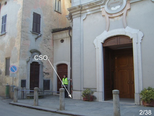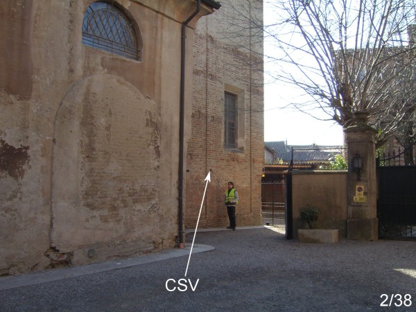 | Contrassegni | [{"simbolo_contrassegno":"B4","materializzazione":"(CSO) – Centrino universale infisso nella pavimentazione in pietra davanti alla chiesa, alla base della facciata, spigolo sinistro, nell'angolo formato dal pilastro e il corpo della canonica."},{"simbolo_contrassegno":"V2","materializzazione":"(CSV) – Piastrina a barilotto infissa sulla parete laterale destra della chiesa in mattoni."}] |