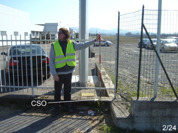 [{"simbolo_contrassegno":"B2","materializzazione":"(CSO) – Chiodo anonimo infisso sul muretto di recinzione a sostegno della ringhiera della concessionaria FIAT, prospiciente la ex S.S.10, in prossimit\u00e0 dello spigolo di destra."}]