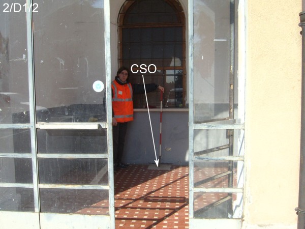| Contrassegni | [{"simbolo_contrassegno":"P4","materializzazione":"(CSO) – Pozzetto rialzato con PVC e chiusino in ghisa e protetto da lastra in marmo, contenente chiodo anonimo, posto nell'atrio della stazione sotto lo sportello della biglietteria."}] |