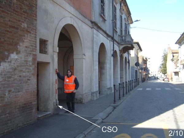 [{"simbolo_contrassegno":"B1","materializzazione":"(CSO) – Bullone infisso nella facciata a sinistra dell'ingresso carraio dell'ex Municipio di Pontecurone, nei pressi della torre."},{"simbolo_contrassegno":"V3","materializzazione":"(CSV) – Piastrina antica infissa sulla lesena, a destra della porta di ingresso, sotto il porticato."}]