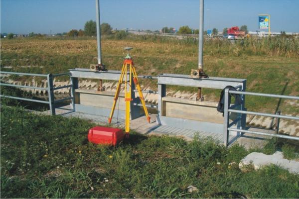 | materializzazione | Centrino in acciaio inox di altro ente infisso su base di cemento armato posta nel mezzo di due saracinesche di una chiusa. |