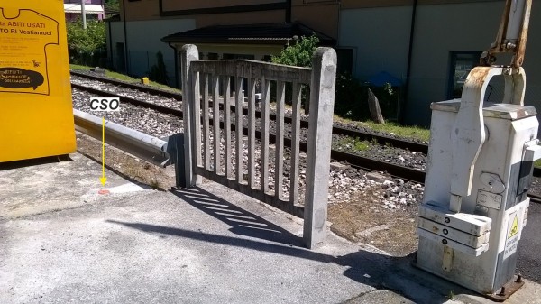 | Contrassegni | [{"simbolo_contrassegno":"B4","materializzazione":"(CSO) – Centrino universale infisso nella soletta, a 3 m circa dal supporto della sbarra lato monte, a lato del passsaggio a livello ferroviario."}] |