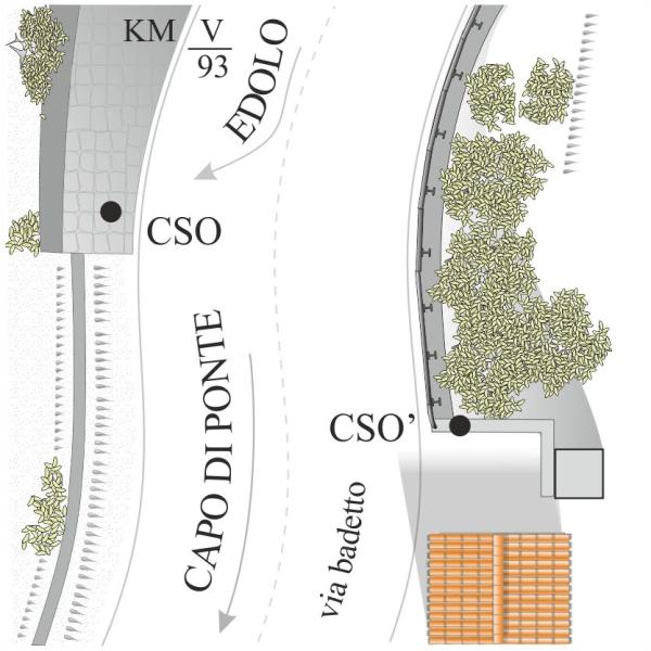 | Contrassegni | [{"simbolo_contrassegno":"B1","materializzazione":"(CSO) – Bullone stabilizzato nel muro di scarpa al km 93,500 della SP 42."},{"simbolo_contrassegno":"B2","materializzazione":"(CSO') – Centrino anonimo stabilizzato sul cordolo in via badetto, SP 42 km 93,500."}] |