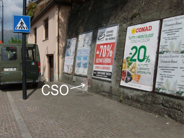 [{"simbolo_contrassegno":"B1","materializzazione":"(CSO) – Bullone infisso nel muro di controripa posto di fronte la Chiesa Parrocchiale, all'altezza del km 19,600 della S.S. 510,"},{"simbolo_contrassegno":"V1","materializzazione":"(CSV) – Mensola infissa sulla parete laterale, rivolta verso Brescia, della Chiesa Parrocchiale in prossimit\u00e0 della spigolo destro."}]