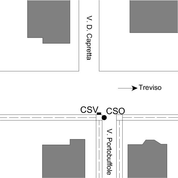 [{"simbolo_contrassegno":"B1","materializzazione":"(CSO) – Bullone infisso sul pilastro destro della via Portobuffole."},{"simbolo_contrassegno":"V5","materializzazione":"(CSV) – Targa con linea incisa sullo stesso pilastro in corrispondenza del CSO."}]